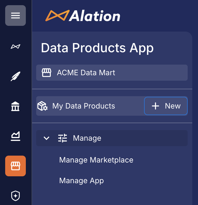 You create data products in the Data Products App, which you can access from the left-side navigation.