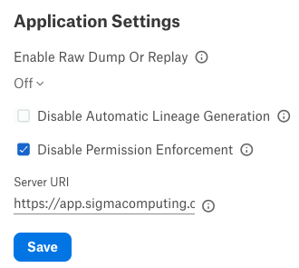 Leave this checkbox selected. Permission enforcement is not supported between Sigma and Alation |